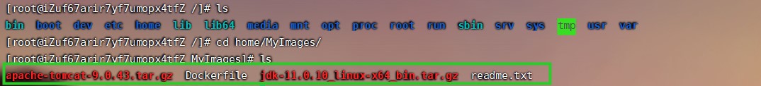 6、查看文件夹文件(有启动tomcat文件:startup.sh):ls