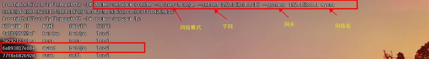 docker network create --driver bridge --subnet 192.168.0.0/16 --gateway 192.168.0.1 mynet