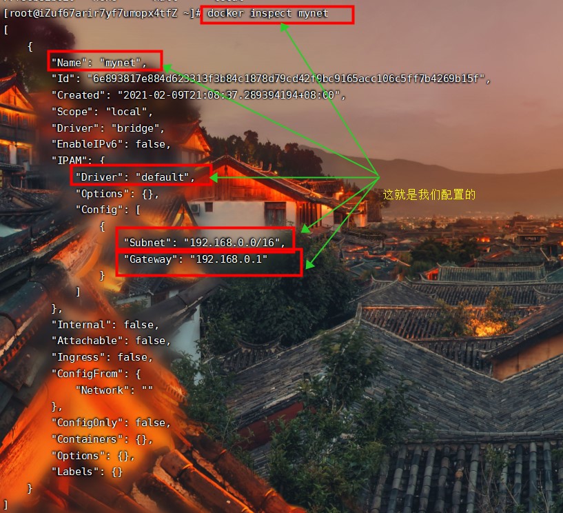 命令:docker inspect mynet