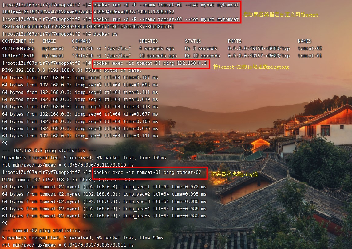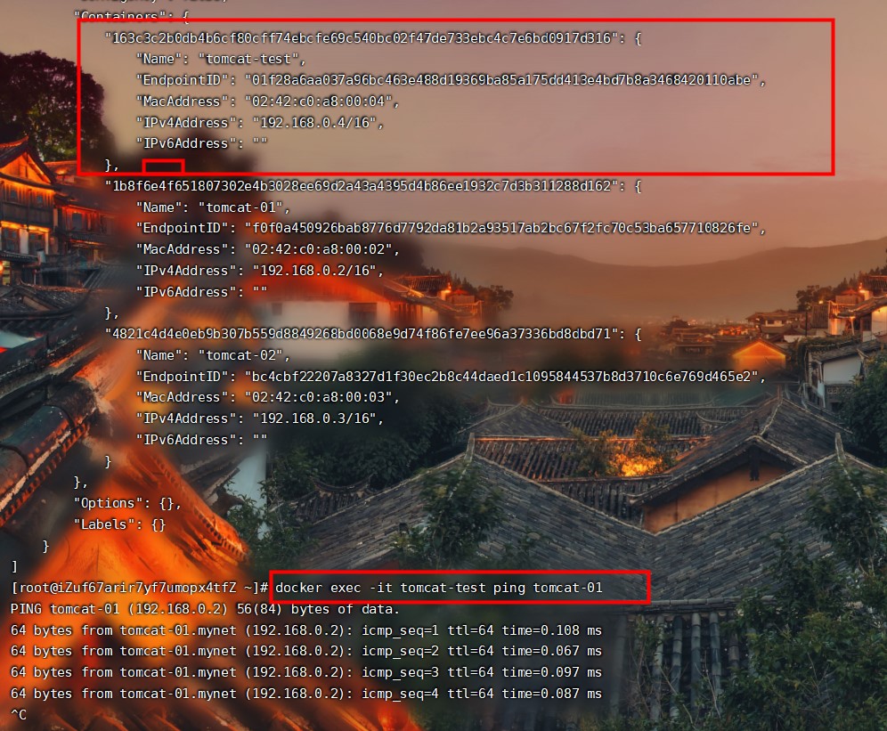 命令:docker exec -it tomcat-test ping tomcat01